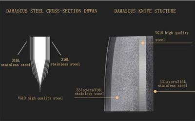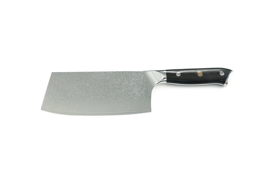Esta faca de aço de Damasco foi artificialmente trabalhada pela técnica de forjamento de processamento de lentes em uma fábrica. É bem equilibrada e fácil de usar para profissionais e entusiastas da culinária.