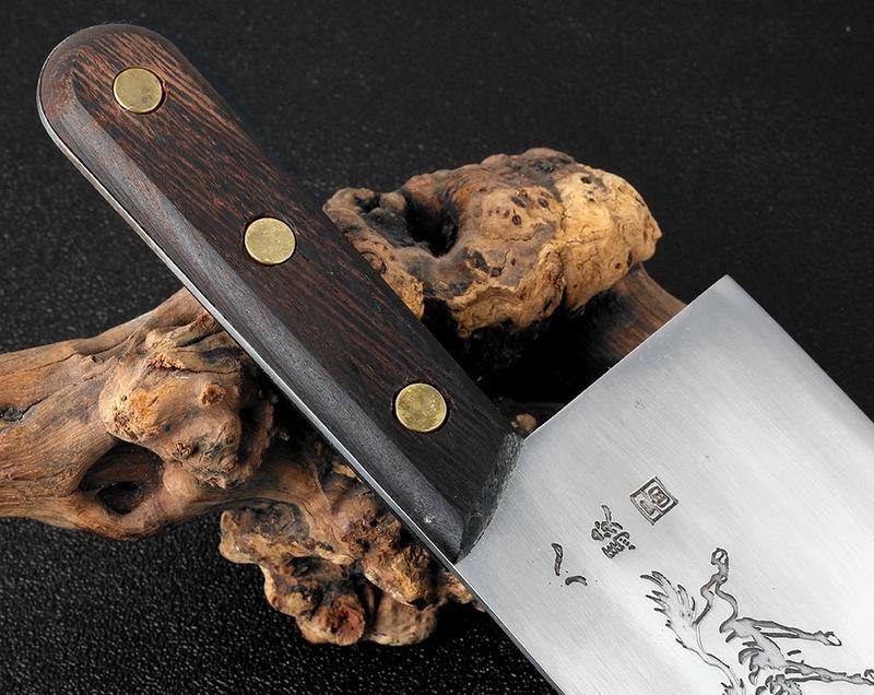 A bela alça de madeira é projetada para ser muito confortável para sua mão e equilibra a lâmina perfeitamente.